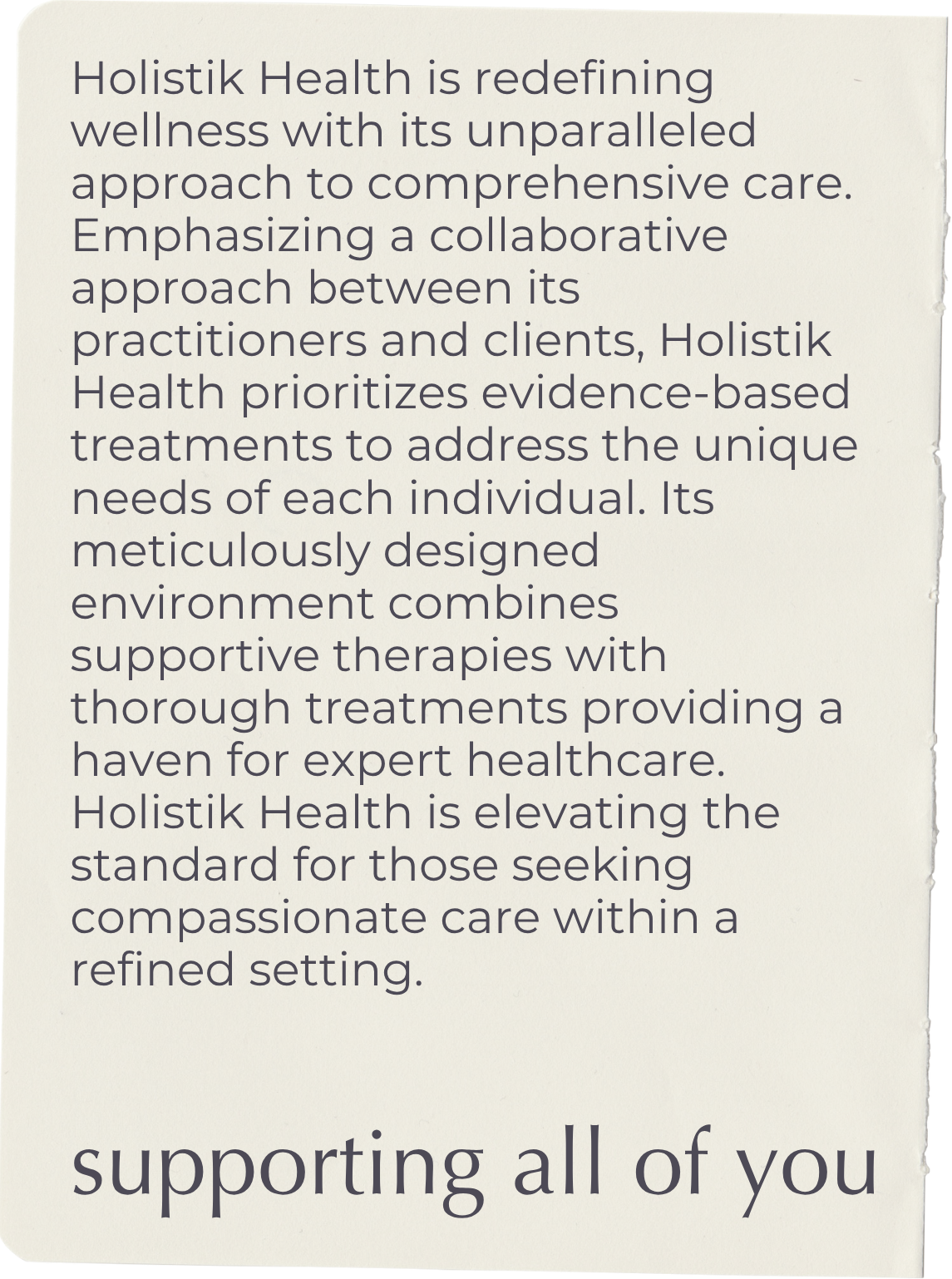 Holistik Health’s positioning statement is at the heart of this rebrand, reinforcing their dedication to evidence-based treatments and a collaborative approach between practitioners and clients. By providing a sanctuary for expert healthcare, Holistik Health is redefining wellness and ensuring that every client’s unique needs are met with the utmost care.