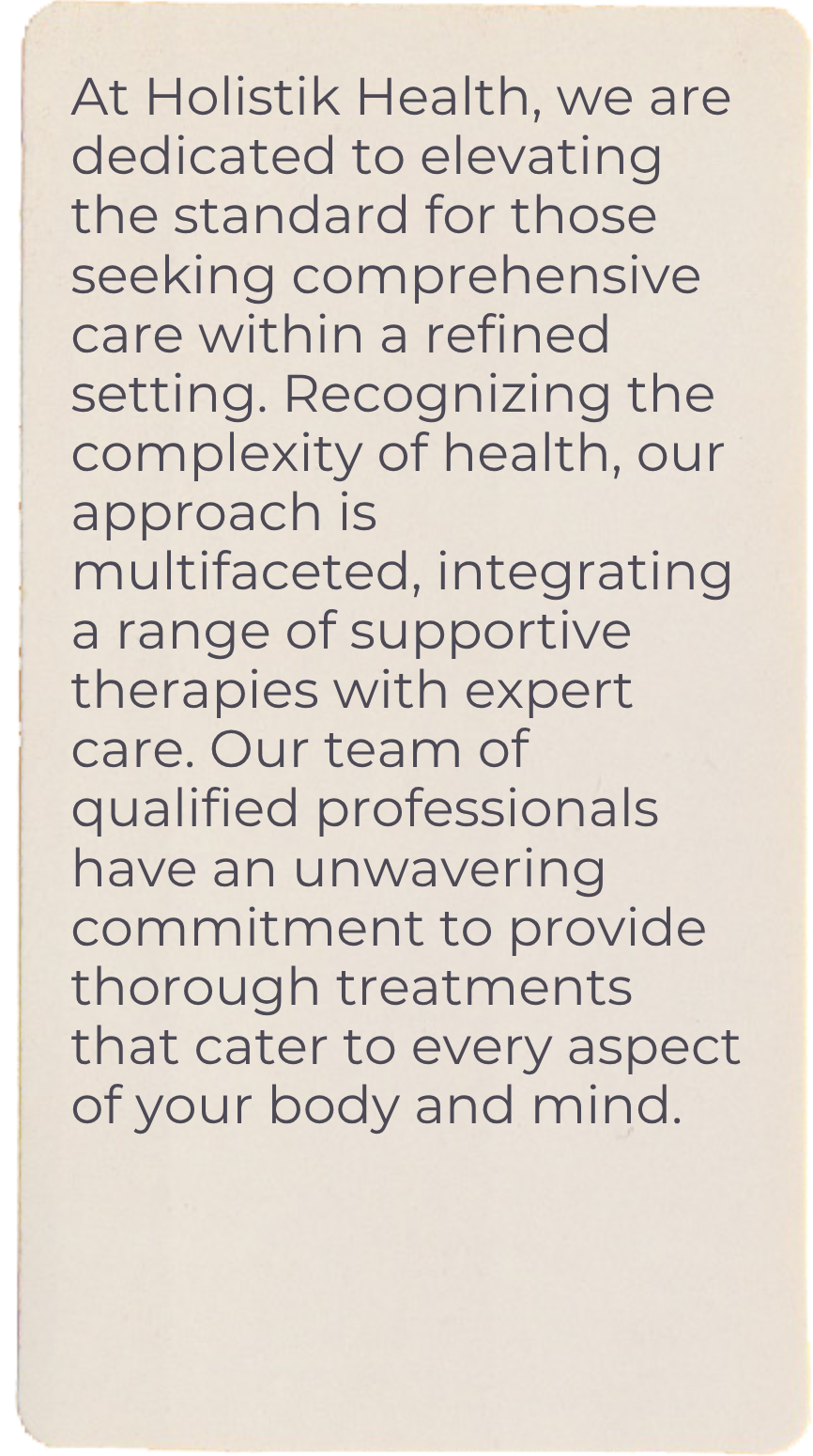 Our team had the pleasure of collaborating with Holistik Health to create a brand identity that aligns with their mission to elevate the standard of comprehensive care in a refined, supportive setting. With a focus on wellness and expert care, we worked closely with their team to craft a logo, typography, and colour palette that reflects their commitment to holistic health and luxurious service. The logo we designed embodies their core values while the custom typography and colour palette create a visual language that speaks to their refined, compassionate approach.